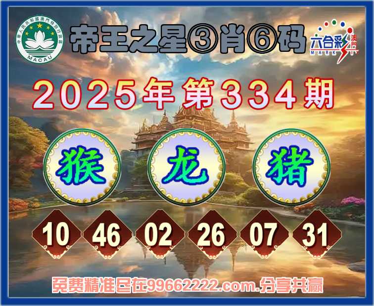 334期:《帝王之星》 🚵♀️③肖⑥码🚵♀️【猴龙猪】开:猴46准