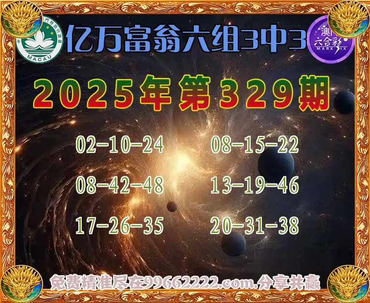 329期:『亿万富翁』 🏄♀️六组3中3🏄♀️